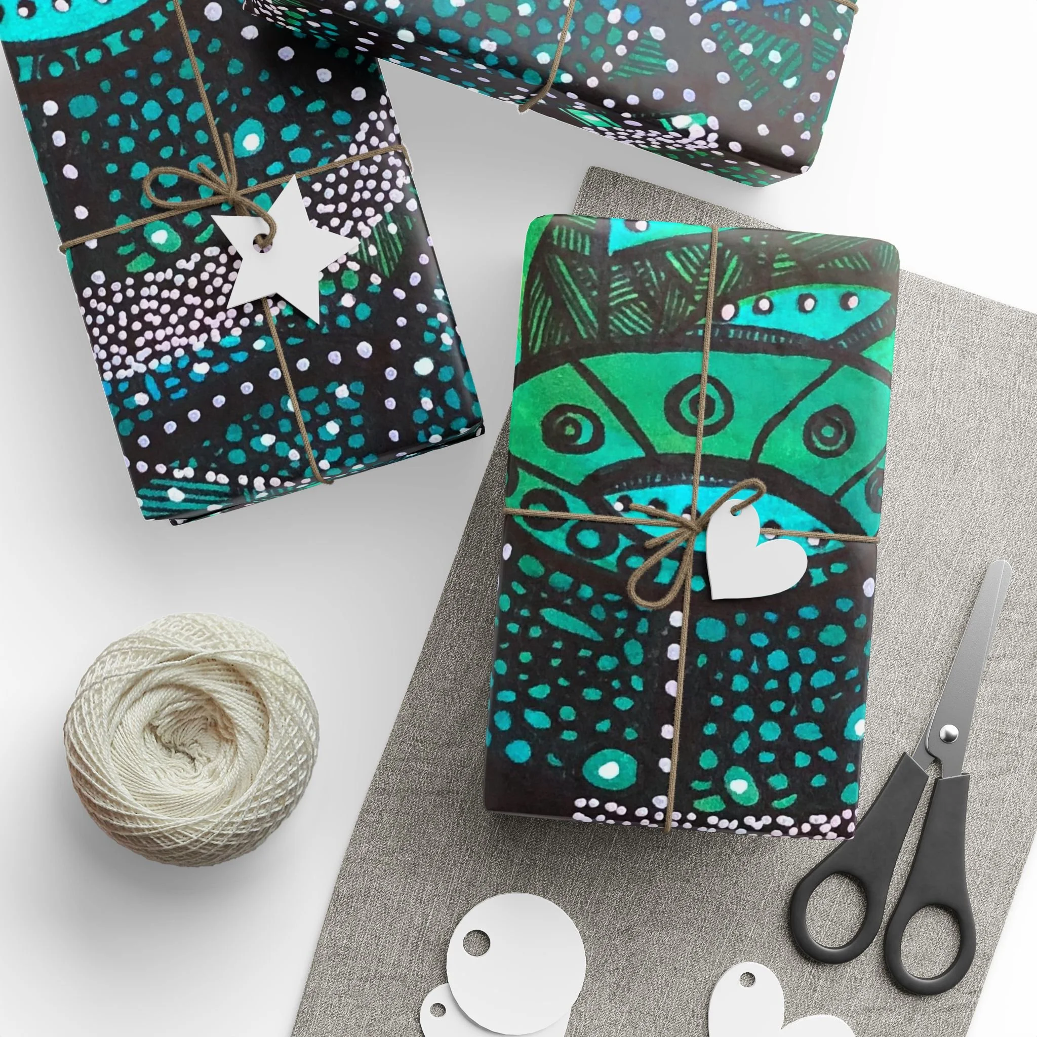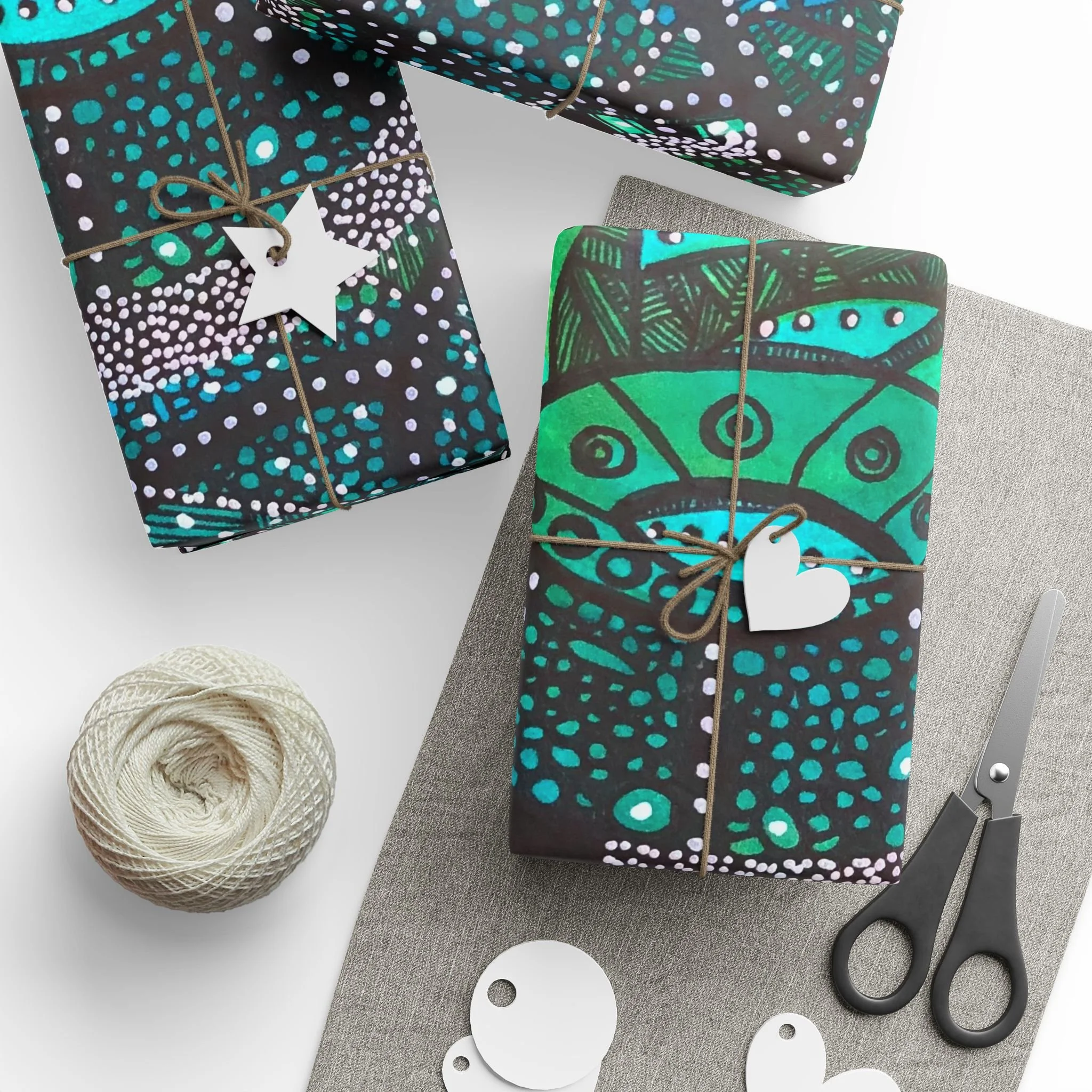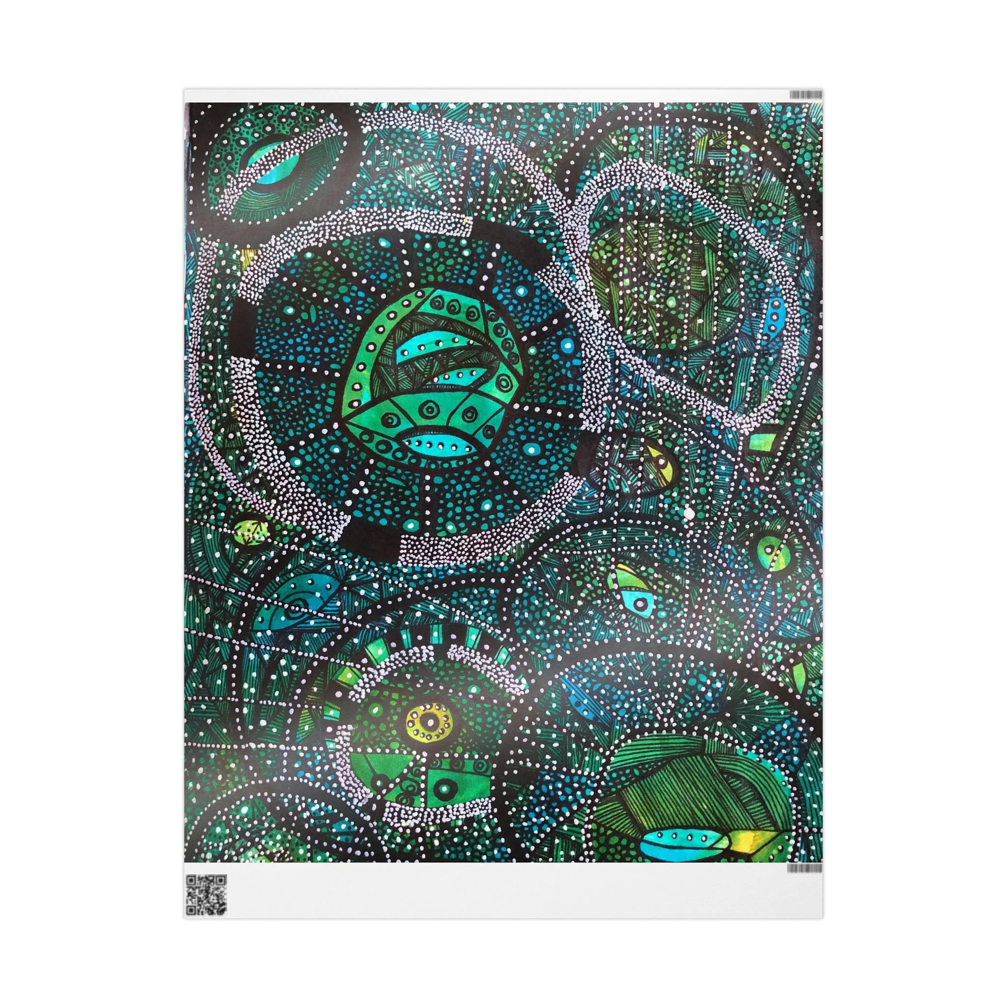 .: Please note: Wrapping paper from SPOKE includes white spaces at top and bottom edges with a bar and QR code