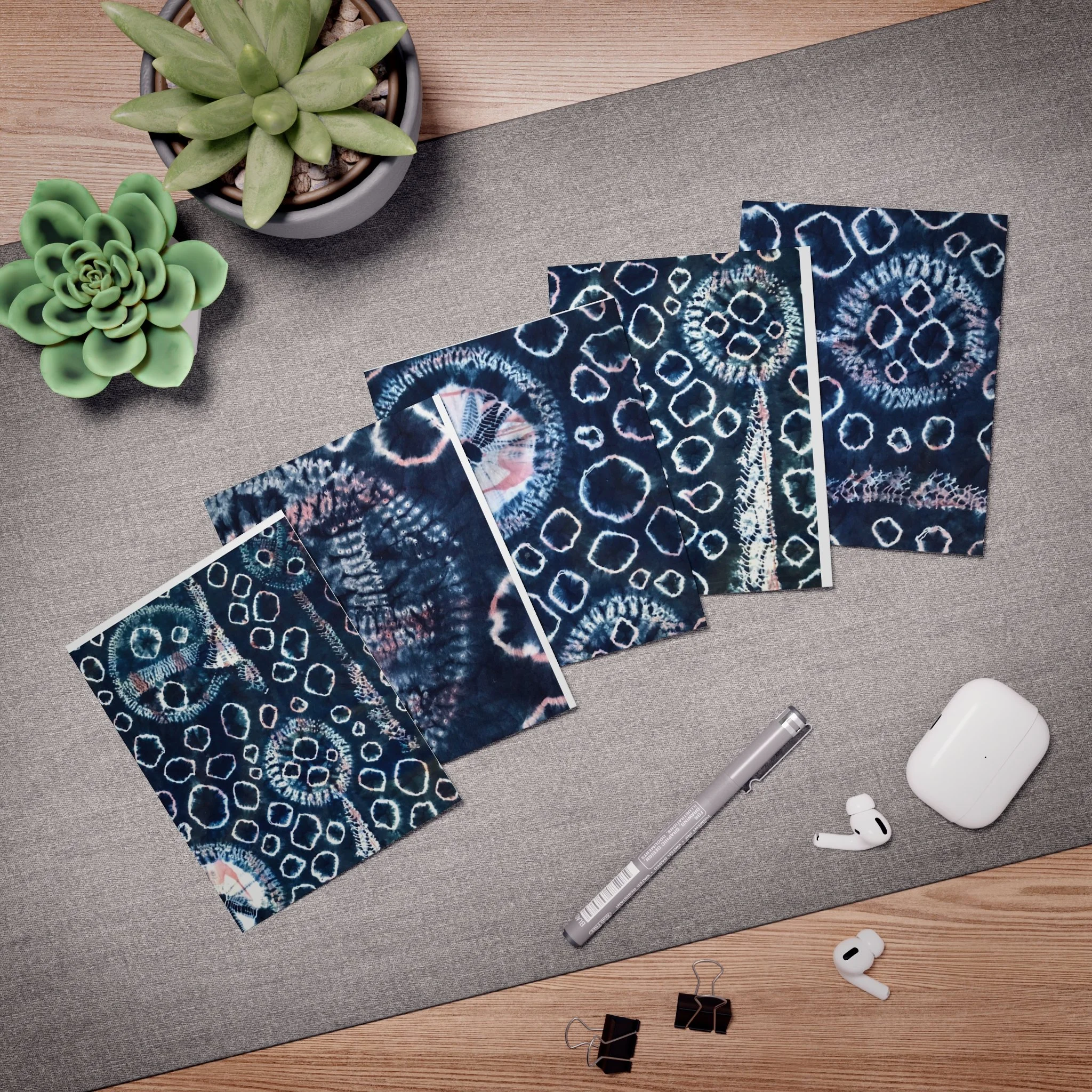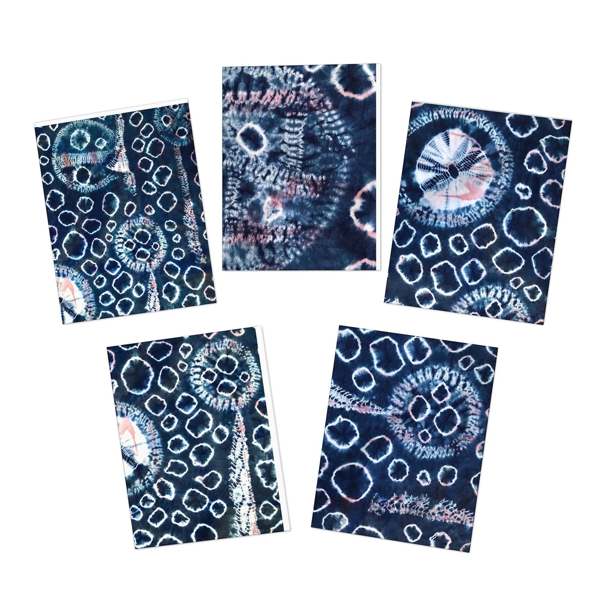 Everyone loves receiving a beautiful personal card. IféArts has added a line of aso adire (indigo fabric) note cards. Each card is from one of my original indigo tapestries entittled "Moons and Stars" incorporating hand sewn/hand tied/hand dying techniques from the Yoruba people of Nigeria, West Africa. The pack of 5 cards includes matching envelopes. Each card is made with high-quality uncoated paper.
