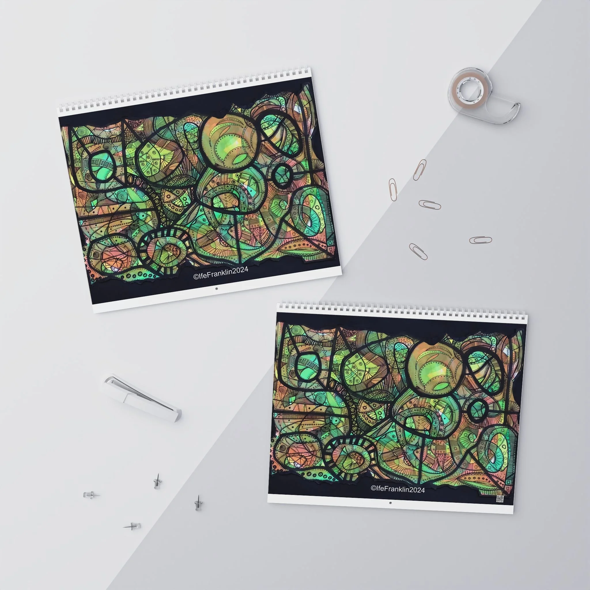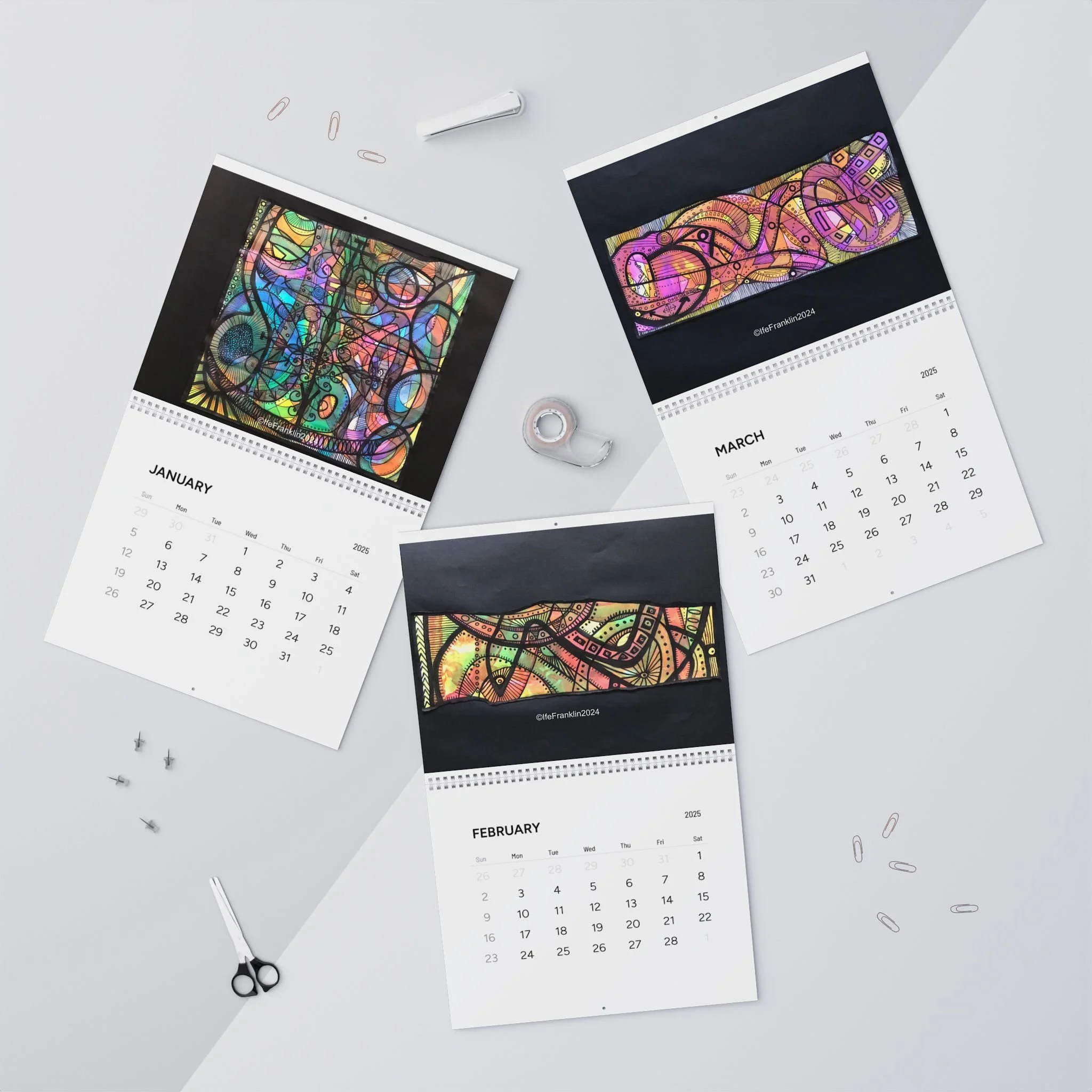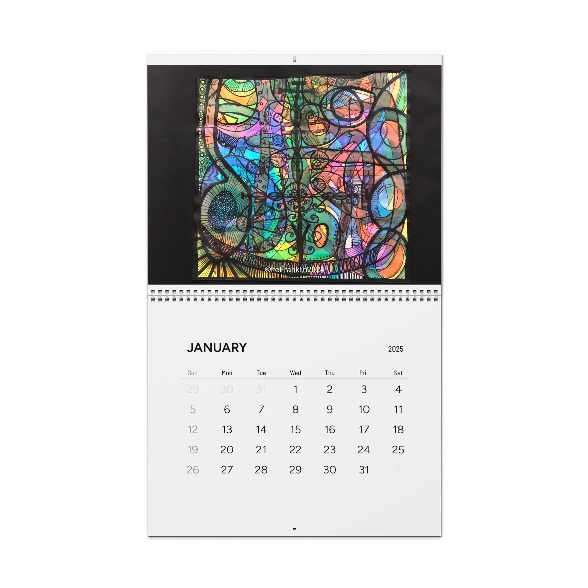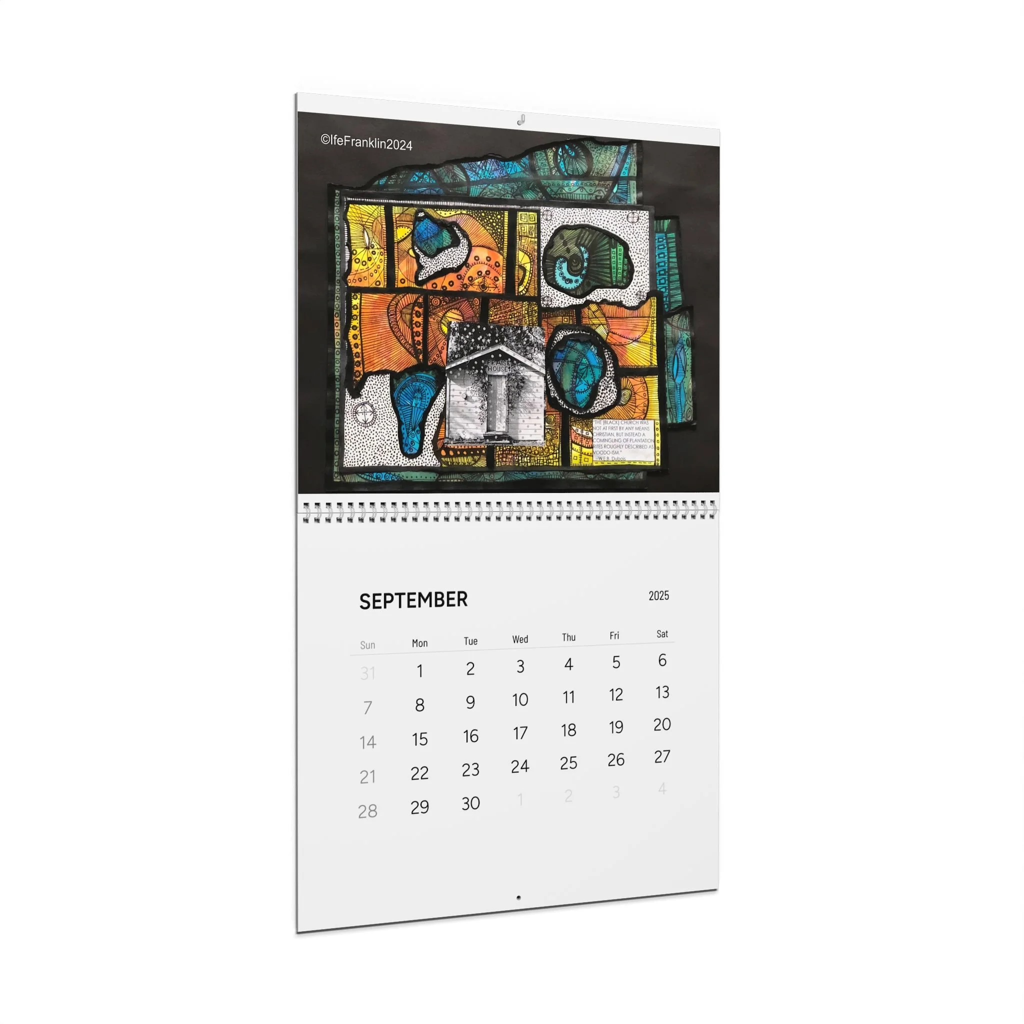Mark the year with an IfeArts wall calendar for 2025. Each month radiates with my artwork. Each calendars is printed on high quality paper stock and printed with vibrant color so you wont miss out on any of the details of my pieces. Each calendar comes with a spiral binding and a centered hole for wall hanging.